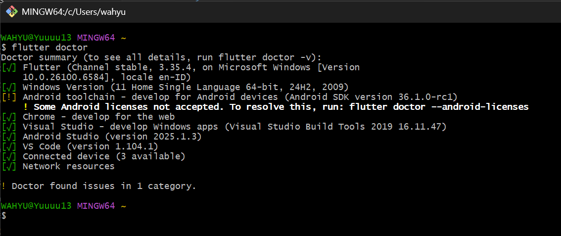 - Menyiapkan lingkungan Flutter Development (SDK, Git, Android SDK, IDE)