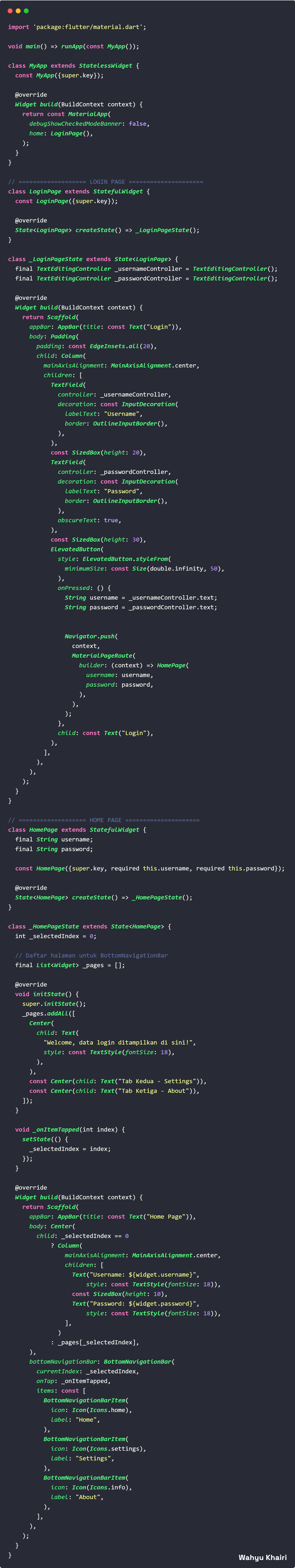 - Buat class menggunakan StatelessWidget dengan nama