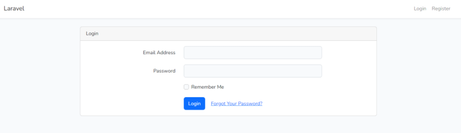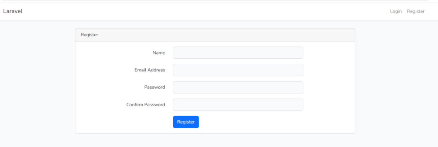 http://127.0.0.1:8000/registerpada browser maka akan tampil halaman login seperti berikut. "