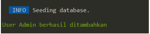 - User admin berhasil ditambahkan melalui seeder