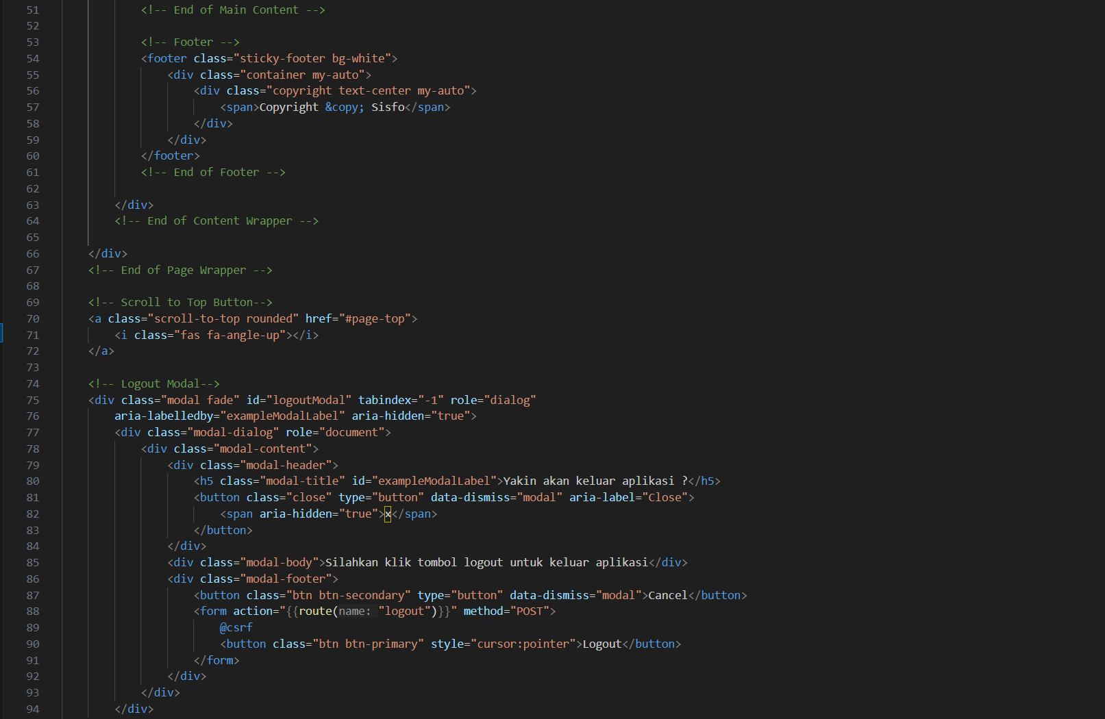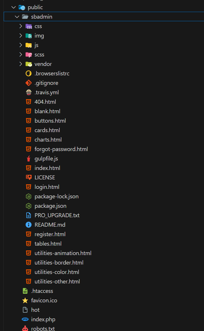 Gunakan template "https://startbootstrap.com/theme/sb-admin-2". Ekstrak ke public/sbadmin.