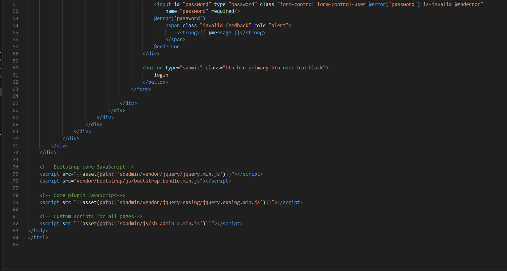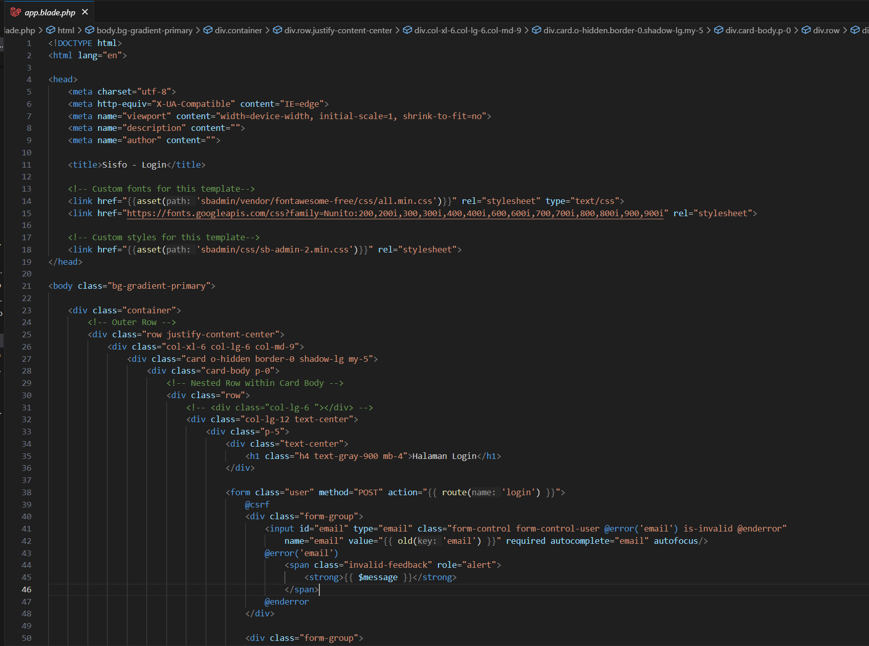 Ganti file resources/views/layouts/app.blade.php dengan tampilan login SB Admin.