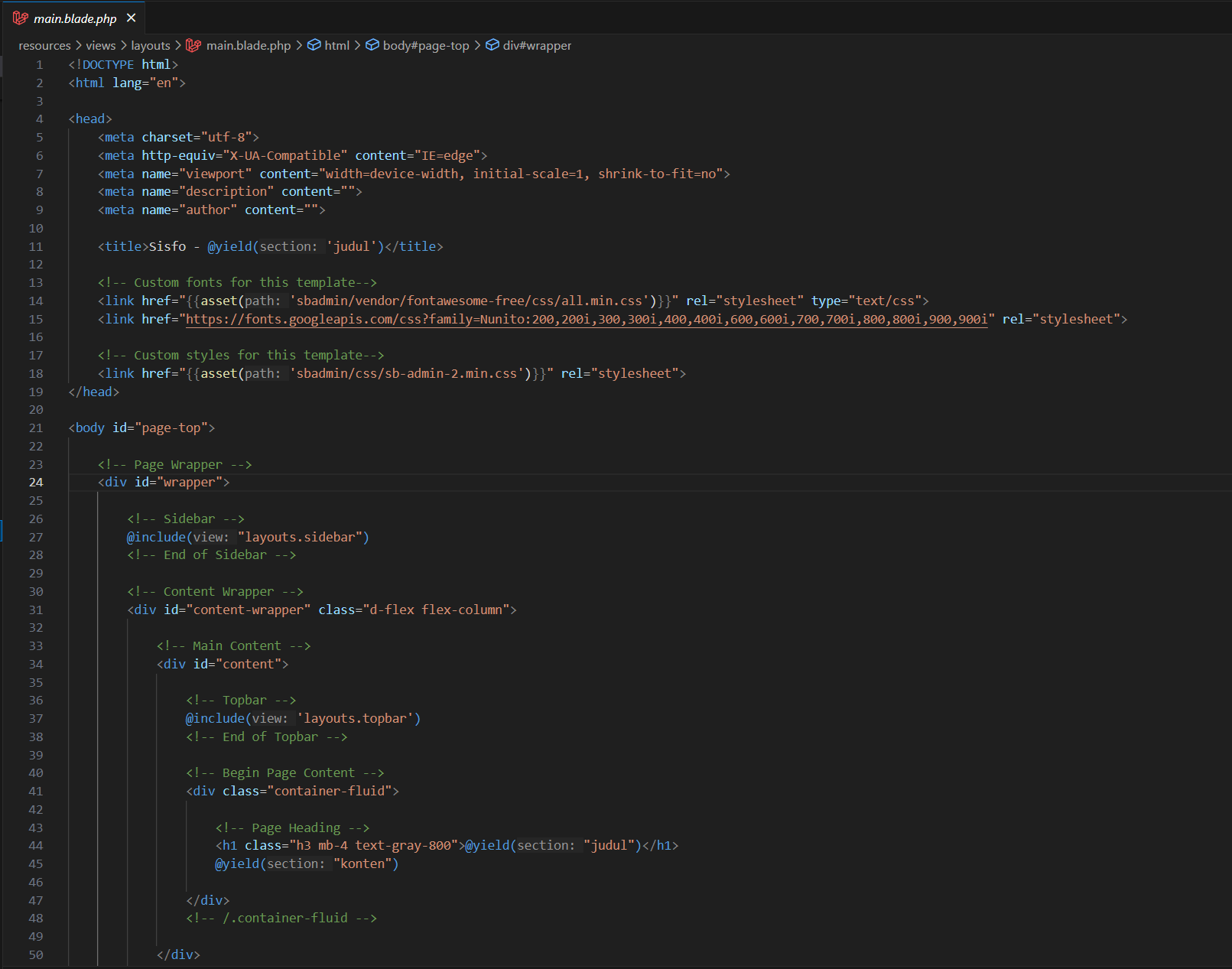 Buat file resources/views/layouts/main.blade.php sebagai layout utama.
