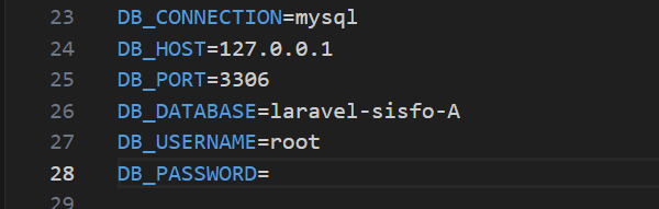 Buka file .env dan ubah konfigurasi menjadi: