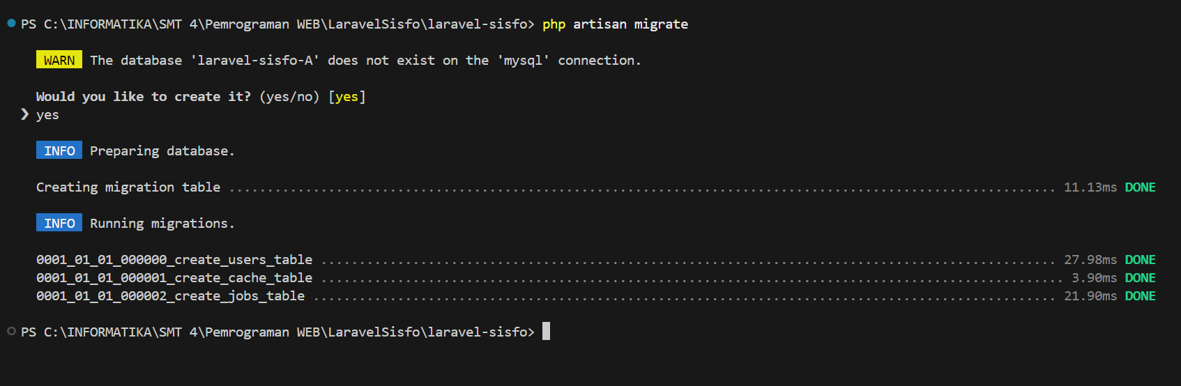 - Jalankan migrasi: